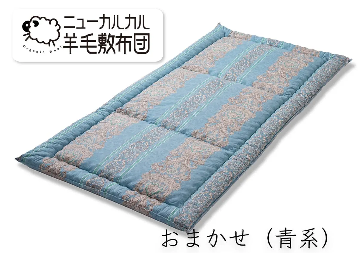 - 【アウトレット522/限定2枚】ニューカルカル羊毛敷布団 シングル100cm×210cm ブルー (旧仕様綿(羊毛70% ポリエステル30%)のため販売価格29800円⇒19800円 )
