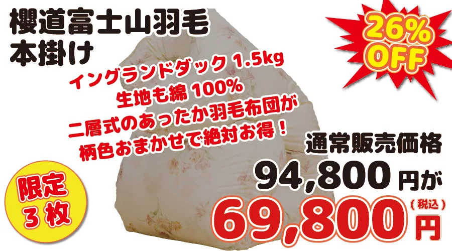 寒冷地(冬に0度を下回る)仕様の羽毛たっぷり1.5kg、二層式のあったか羽毛布団です♪