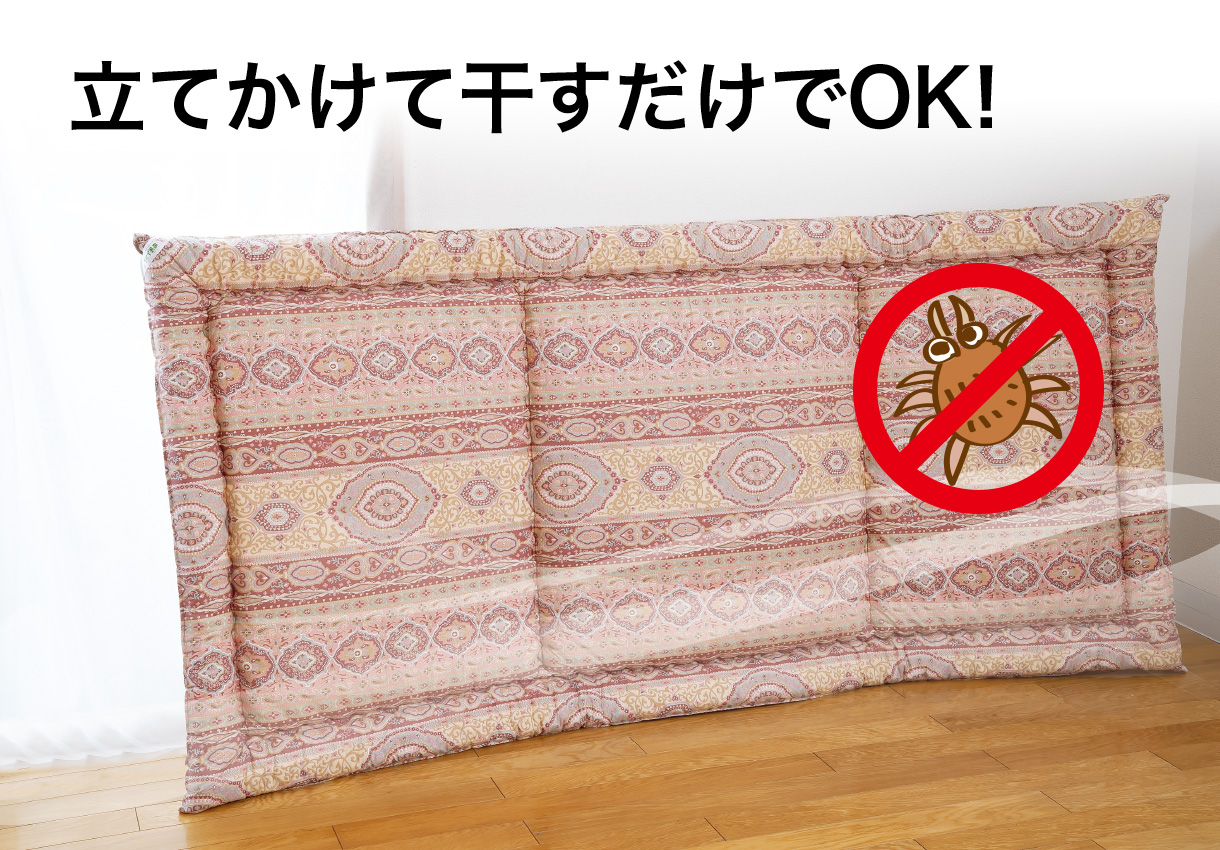 カルカル敷布団シリーズはその構造から吸湿性、発散性に優れていますので、天日で何時間も干すという作業がいりません。