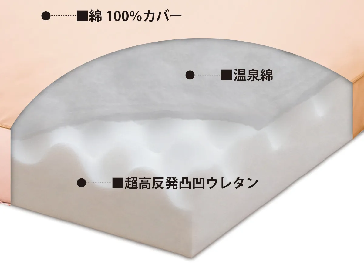 ・厚さ6.5㎝以上の超高反発凸凹ウレタンで底つき感ゼロ。