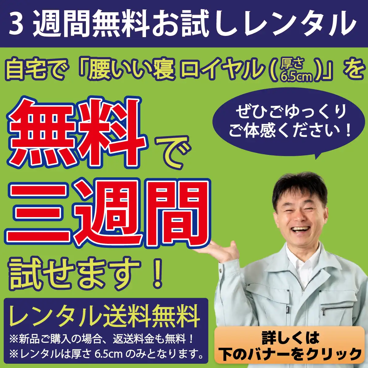 「腰いい寝」「快眠の王」シリーズを無料で3週間お試し頂けます!