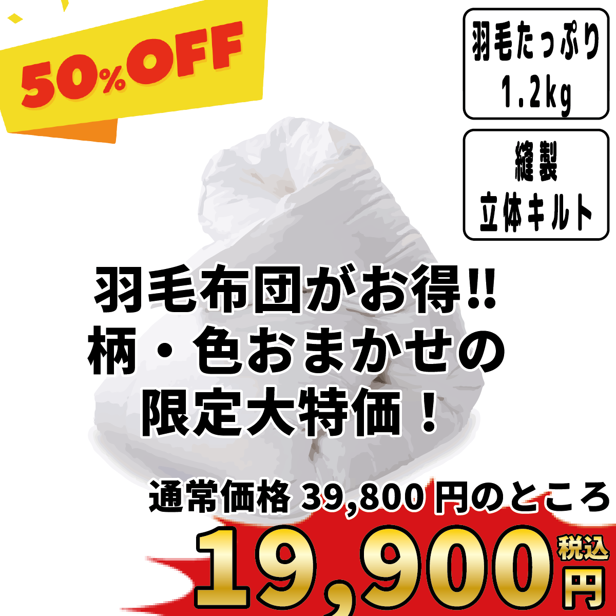完売【B品市301/限定3枚】富士山スペシャル羽毛(合掛け) シングル150cm×210cm おまかせ柄 (中身:中国ホワイトダック ダウン85% フェザー15% / 充填量:1.2kg / 側生地:ポリエステル85% 綿15% / 縫製:立体キルト) (《B品》生地在庫処分、柄色おまかせ大特価!現行販売価格39800円⇒19900円 )