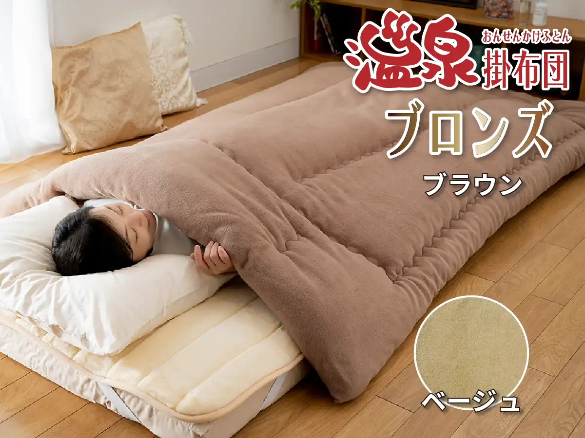 冷え性対策!「布団に入っても身体が温まらない…」とお悩みの方に「温泉掛布団【ブロンズ】」シングル39,800円(税込)~