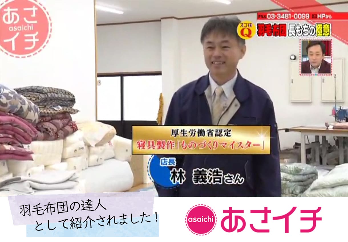 2017年にはNHKあさイチで、羽毛布団を長持ちさせる極意で出演、また、2019年にはテレビ東京の「二代目和風総本家」に羽毛の達人として出演しました。