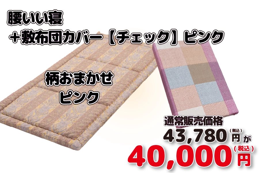 【新生活012/限定5枚】腰いい寝 シングル100cm×210cm 柄おまかせピンク系 + 敷布団カバー【チェック】(綿100%)ピンク (セール限定販売価格43780円相当⇒40000円 )