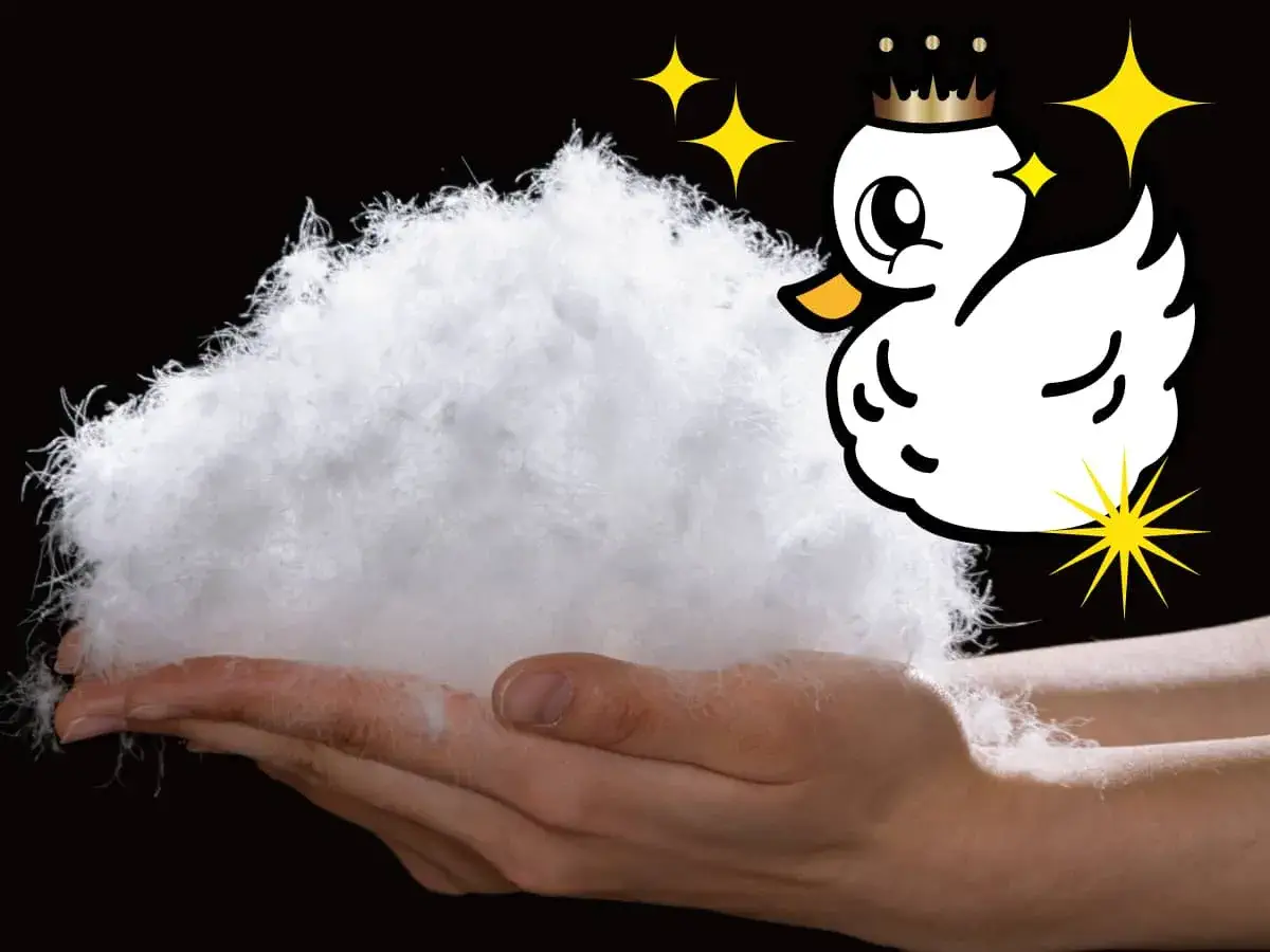 ダック(アヒル)の羽毛はグースより、ダウンボール(羽毛の一つの核)が小さいですが、保温力が格段に低下するわけではありません。「櫻道富士山羽毛」のダックは、マイスターが厳選した上質なダックの羽毛を使用しています。